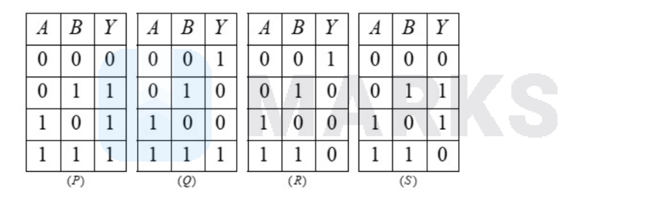 The truth-table for the two-input Ex-OR gate is (A, B are the inputs, $\mathrm{Y}$ is the output).