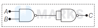 $C=\overline{\overline{A B}}=A B=$ Output of AND gate