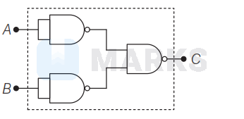 & C=\overline{\bar{A} \cdot \bar{B}}=\overline{\bar{A}}+\overline{\bar{B}} \quad[\because \overline{x \cdot y}=\bar{x}+\bar{y}] \\