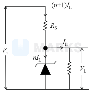 The value of the resistor, , needed in the DC voltage regulator circuit shown here, equals: