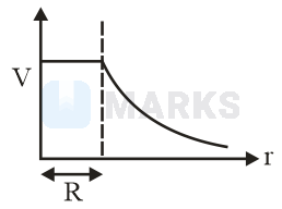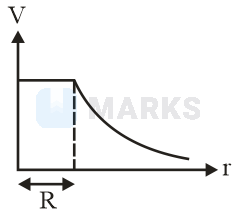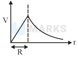 The electric potential inside the surface and inside the surface of a sphere in terms of charge and the radius of the sphere, and , so the graphical representation for this,