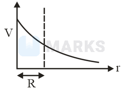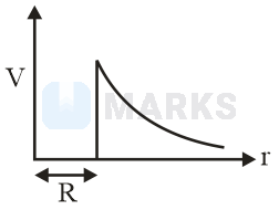 The variation of electrostatic potential with radial distance from the centre of a positively charged metallic thin shell of radius is given by the graph