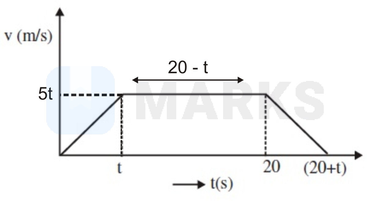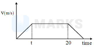 The velocity-time graph of a particle moving along a straight line is as shown in the diagram. The rate of acceleration and retardation is constant and is equal to . If the average velocity during the motion is then the maximum velocity of the particle is