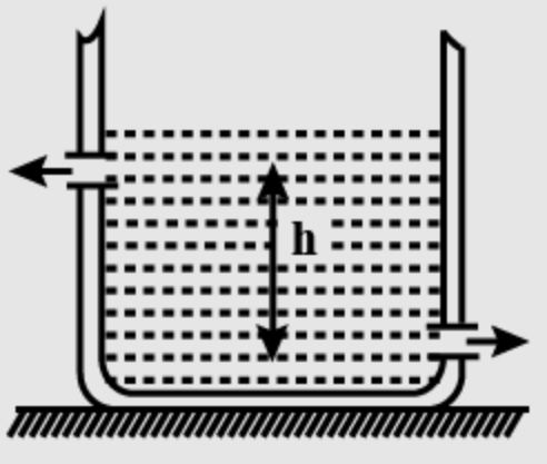 There are two identical small holes of area of cross-section on the opposite sides of a tank containing a liquid of density, The difference in height between the holes is $h$.