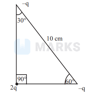 Three charges are arranged on the vertices of a right