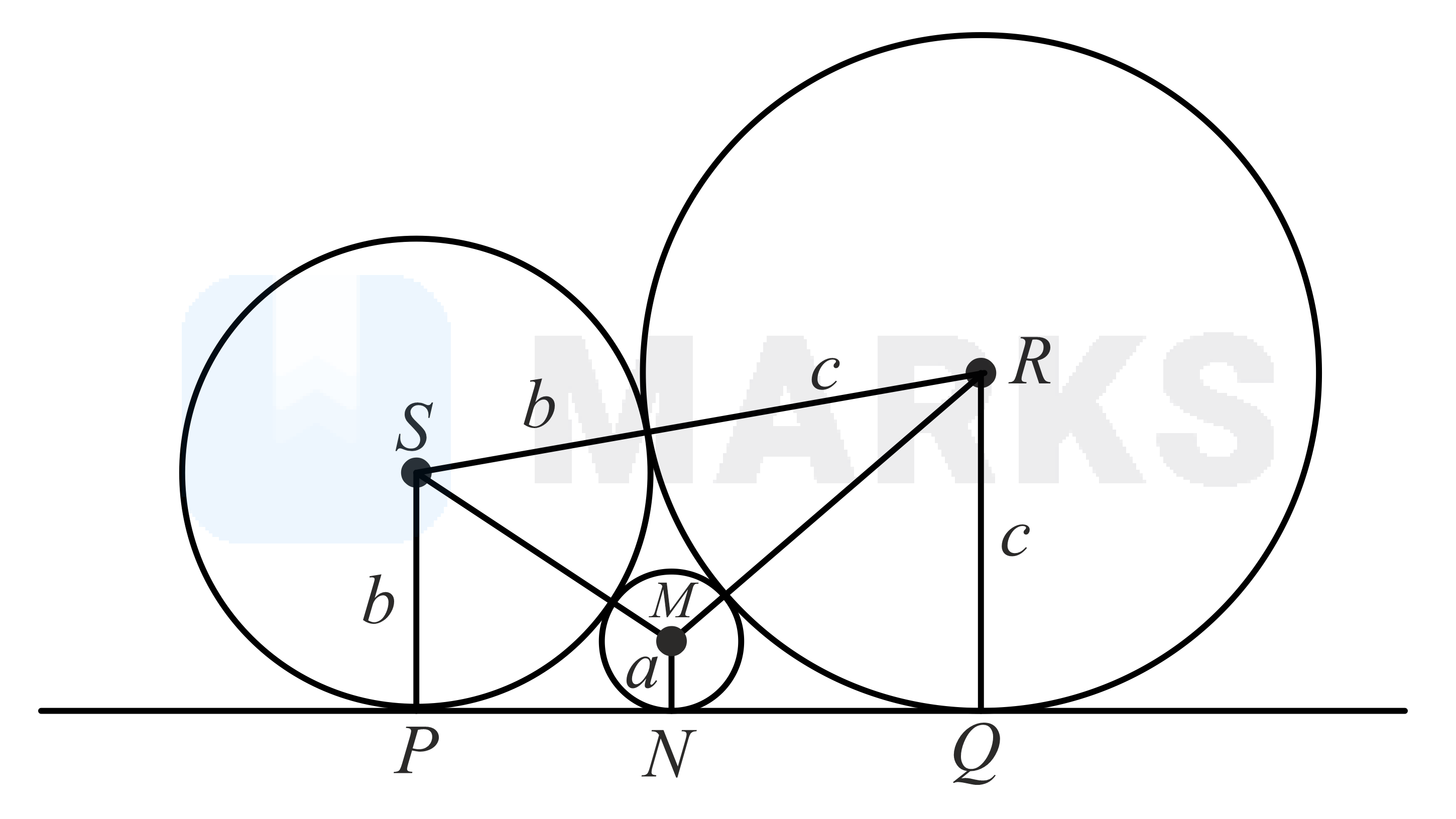 Three circles of radii touch each other externally. If they have axis as a common tangent, then: