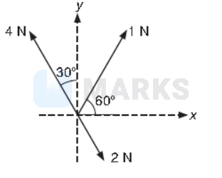 Three forces acting on a body are shown in the figure. To have the resultant force only along the $y$-direction, the magnitude of the minimum additional force needed is