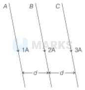 $\therefore$ Force on wire $B$ due to wire $A, F_{A}=B I L$