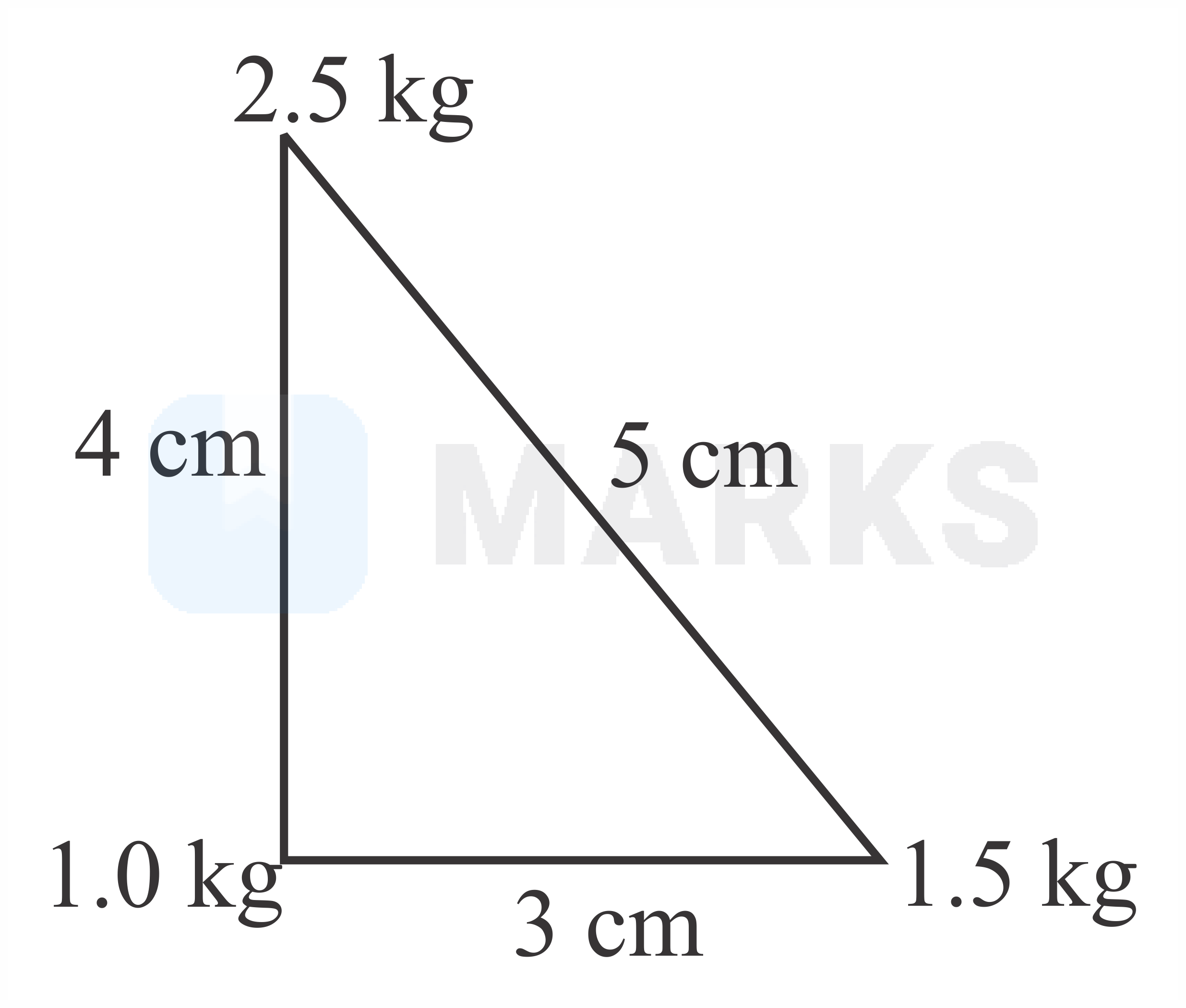 Three point particles of masses and are placed at three corners of a right angle triangle of sides and as shown in the figure. The centre of mass of the system is at a point: