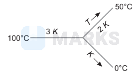 \Rightarrow & \frac{3 K A(100-T)}{l} & =\frac{2 K A(T-50)}{l}+\frac{K A(T-0)}{l} \\