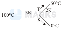 \Rightarrow \frac{3 K A(100-T)}{l}=\frac{2 K A(T-50)}{l}+\frac{K A(T-0)}{l} \\