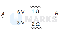 $V_{A B}=$ Equivalent emf of two batteries in parallel.