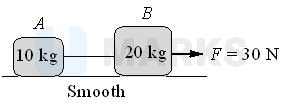 Two blocks and are connected by a massless string (shown in the figure). A force of is applied on block . The distance travelled by centre of mass in starting from rest is