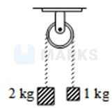 Two blocks of masses and respectively are tied to the ends of a string which passes over a light frictionless pulley. The masses are held at rest at the same horizontal level and then released. The distance traversed by centre of mass in is