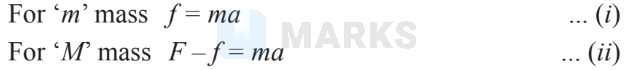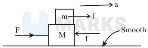 From (i) \& (ii), we get $a=\frac{F}{m+M}$ and $f=\frac{m F}{m+M}$ Distances moved in time $t(s)$