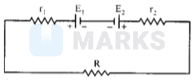 \( \Rightarrow I=\frac{E_{1}-E_{2}}{r_{1}+r_{2}+R} \)
