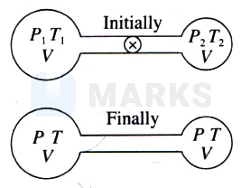 If both vessels are joined together, then the quantity of gas remains the same, i.e.,