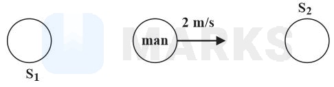 Two factories are sounding their sirens at A man goes from one factory to other at a speed of The velocity of sound is The number of beats heard by the person in one second will be