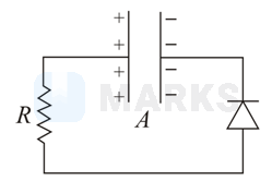 Here, diode is in forward bias, so capacitor discharges and its charge decays as