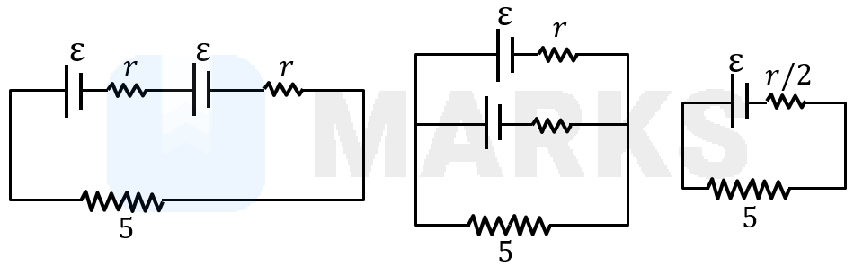 Let be the internal resistance of each cell.