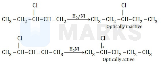 Two isomeric halo alkenes A and B have molecular formula . 'A' gives optically inactive compound while 'B' gives optically active compound in hydrogenation. The two isomers respectively are