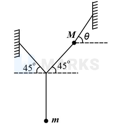 Two masses and are attached with strings as shown in the figure. For the system to be in equilibrium, we must have