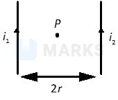 Two parallel long wires carry currents and with . When the currents are in the same direction, the magnetic field at a point midway between the wires is and when the direction of is reversed, the field becomes . The ratio is