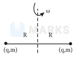 Two particles, each of mass and charge , are attached to the two ends of a light, rigid rod of length . The rod is rotated at a constant angular speed, about a perpendicular axis passing through its centre. The ratio of the magnitudes of the magnetic moment of the system and its angular momentum about the centre of the rod is
