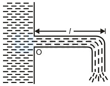 Water flows out of a big tank along a tube bent at right angles; the inside radius of the tube is equal to . The length of the horizontal section of the tube is equal to . The water flow rate is . Find the moment of reaction forces of flowing water, acting on the tube's walls, relative to the point .