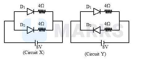 In circuit $\mathrm{X}$, both the diodes are forward biased and hence both will conduct.