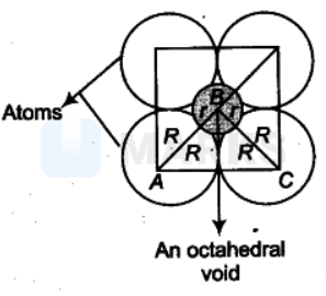 In th figure a sphere fitted in an octahedral void is shown by shaded part