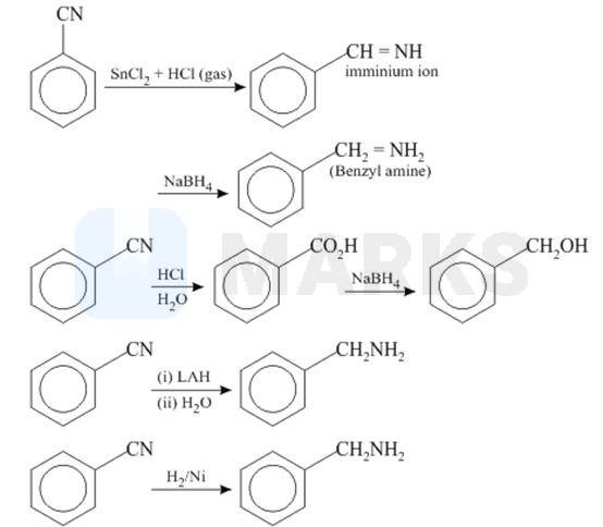 Which of the following is not a correct method of the preparation of benzylamine from cyanobenzene?