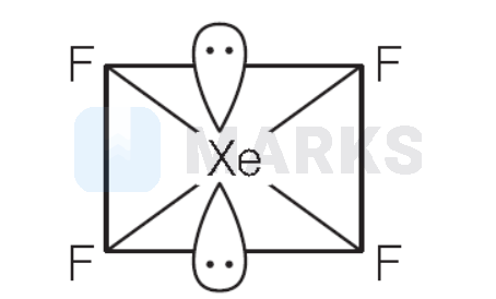 $\mathrm{XeF}_4$ is square planar and $s p^3 d^2$-hybridised.